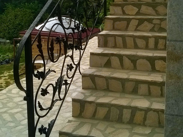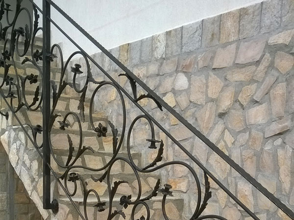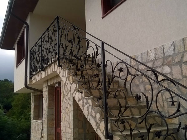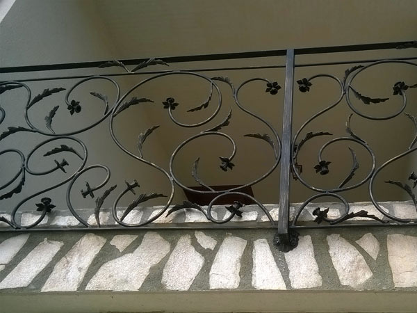 Изработихме за наш клиент във вилната зона след курортен комплекс Златини Пясаци, красив парапет от ковано желязо с декорация от листа и цветя.